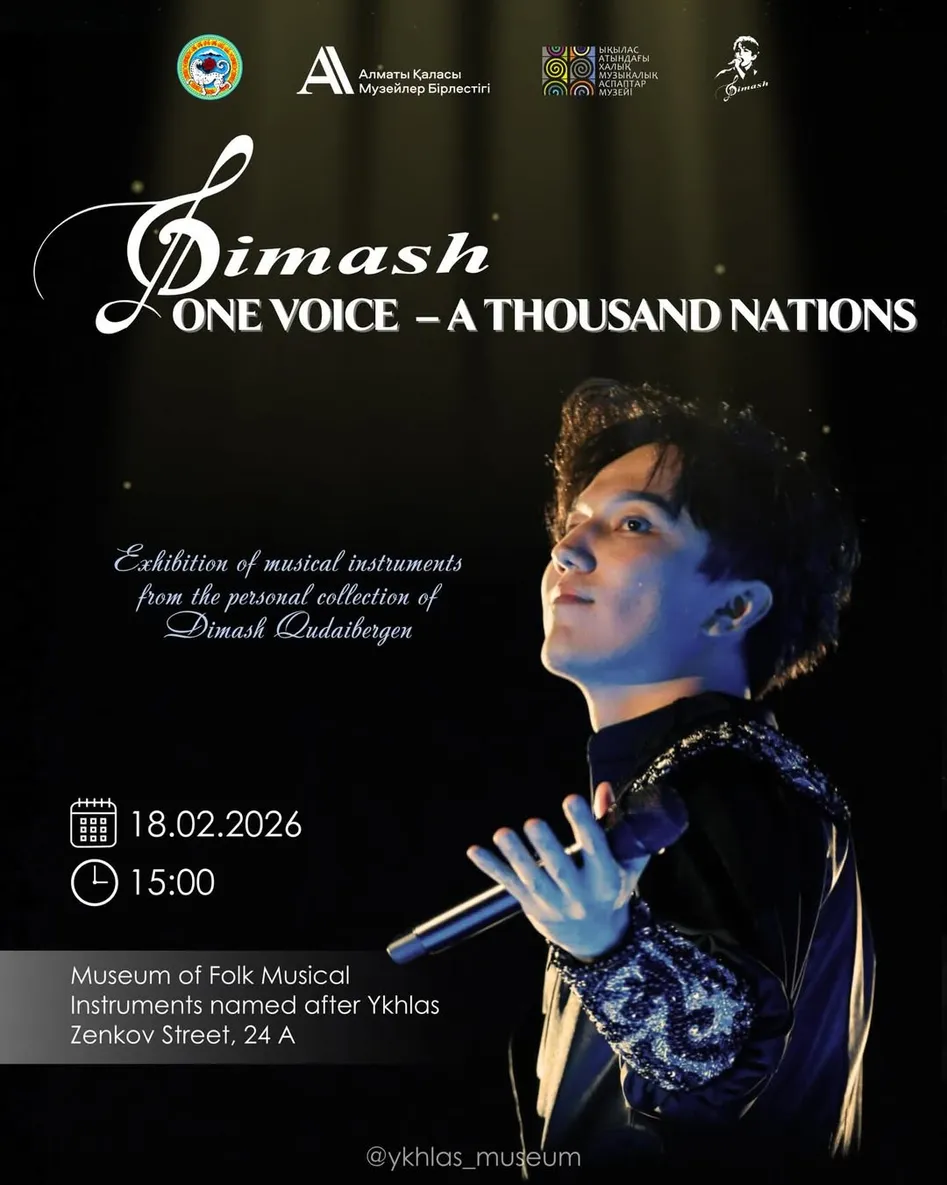 Торжественное открытие выставки «Димаш: бір дауыс – мың ел» состоится 18 февраля 2026 года в 15:00 в Музее народных музыкальных инструментов имени Ыхласа. Посетителям покажут музыкальные инструменты, сценические костюмы и памятные подарки, связанные с международной карьерой исполнителя.